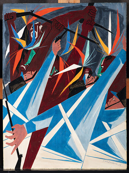 I surveyed the surrounds more information in the dense ecosystem around our home, from the many legged crawling things that appear from the damp basement to our newly re-discovered Redback Salamanders, to the occasional bear, bands of deer, sly fox who appear mid day to harvest the neighbor's chickens, the active night skunks that occasionally spray the neighborhood dogs, and the vast array of birds, even hawks and eagles circling overhead in search of rabbit and rodent. I looked around for still yet more examples and spied the frog perched atop the pond stones beneath the feet of the Virgin Mary effigy, a station that remained of our near ancestry. The frogs, two of them, learned over time, to ignore the many non-threats around, to the point where they don't even budge when the lawn mover is passing half a meter from the water. No movement or change now to the people, dogs, cats, "Harry Potter" our resident ground hog, the squirrels and chipmunks, the steady flow of domestic and wild birds. With the domestic pecking below the feeder and the wild ones each harvesting from their respective stations, and largely in turn by species above, especially when being fed by the premium feed - woodpeckers, wrens, finches, jays, crows, grackle, bluebird, cardinal, oriels, and the vast array of migrating birds that seem to find temporary station near our low Japanese Maple orbit, squirrel proof feeder. When fear is removed and something akin to trust is present between the species, even potential predators and prey, there is an essence of "the garden", the origin, a place before the "toil" my brother keenly celebrates when the tending pain surfaces. Like, when a week prior, we moved several cords of wood, gripping one or two pieces at a time, loading them in the pickup and unloading at destination. Being the passenger in the cab, it happened I was tossing the logs using mainly the left hand which would not be even remotely noteworthy save for the subsequent days of swelling and pain for using the muscles like a lobster claw for those several hours. Even after a full summer of exercise and physical labor, this new gesture was enough to culminate in swelling and pain from the routine. Still in the midst of this, I couldn't find a sufficient answer and why I couldn't so simply answer "for the beauty of it" and speak that simply to my daughter. I was killing in my arrangement of the land, "my" land, here at our address "Tecumseh Path", Tecumseh, the great Shawnee leader killed in the war of 1812, defending his people's native lands, working with the British to 'retake' their right to rule and sovereignty from those who currently occupied the space. A thoughtful rendering of such, immortalized in account, among our recent time, by Jacob Lawrence, in a painting we saw and recognized by name, Tecumseh, in that grand temple of cultures, on once wild Manhattan island.